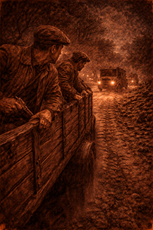Engines were kept low, tuned to a steady murmur rather than a roar. Headlights were hooded, beams narrowed to slits that showed just enough road to avoid disaster and no more. The men riding the running boards stood with knees bent, bodies loose, absorbing motion the way experienced hands absorbed heat.